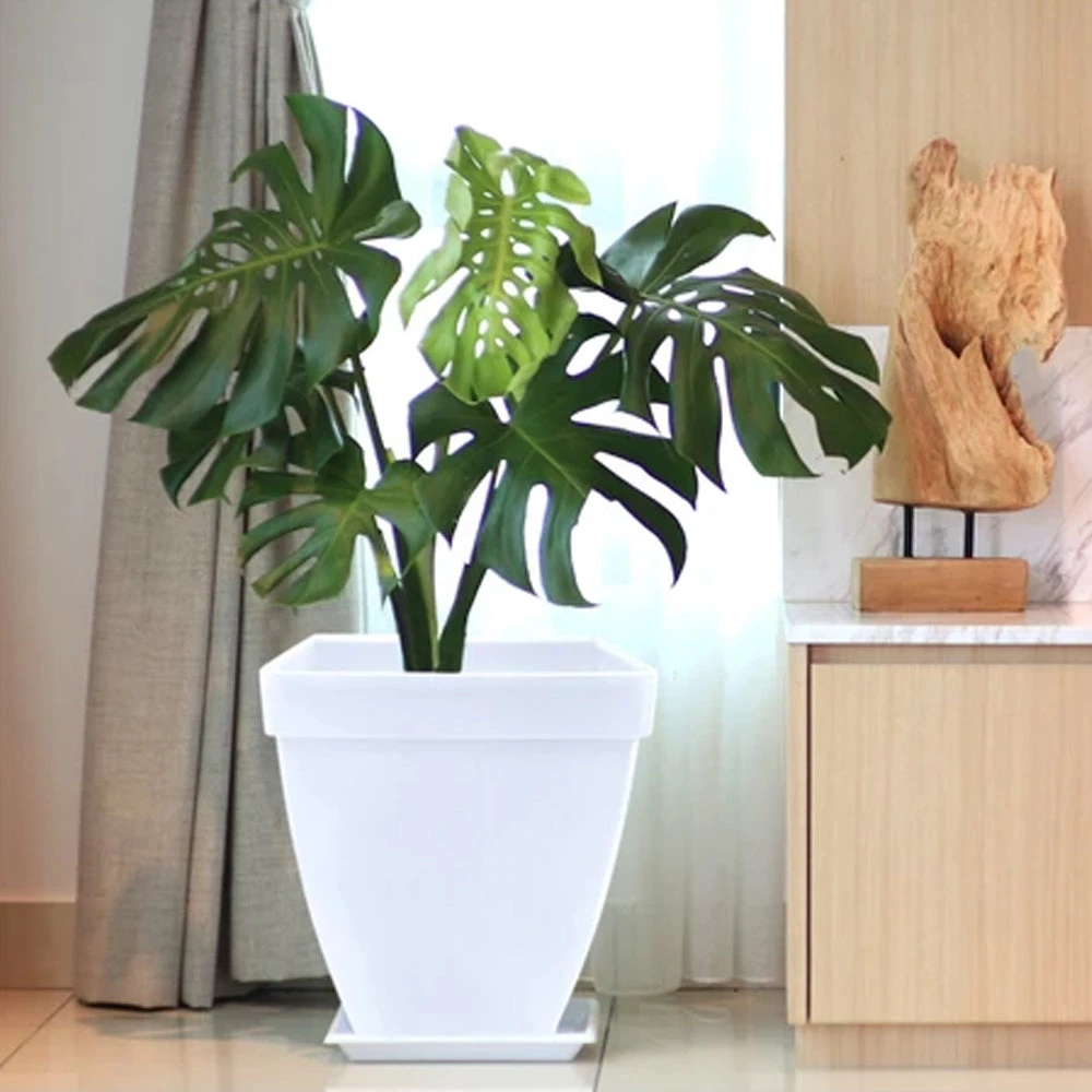 Medium size 350mm sqaure planting pot, made of PP virgin material and food grade coloring. Product can withstand temperature range from +48 Degree Celsius to -17 Degree Celsius, and with UV protection. Good water ventilation to protect your plant from over-watering. Suitable for outdoor gardening. Available in White and Zen Grey.