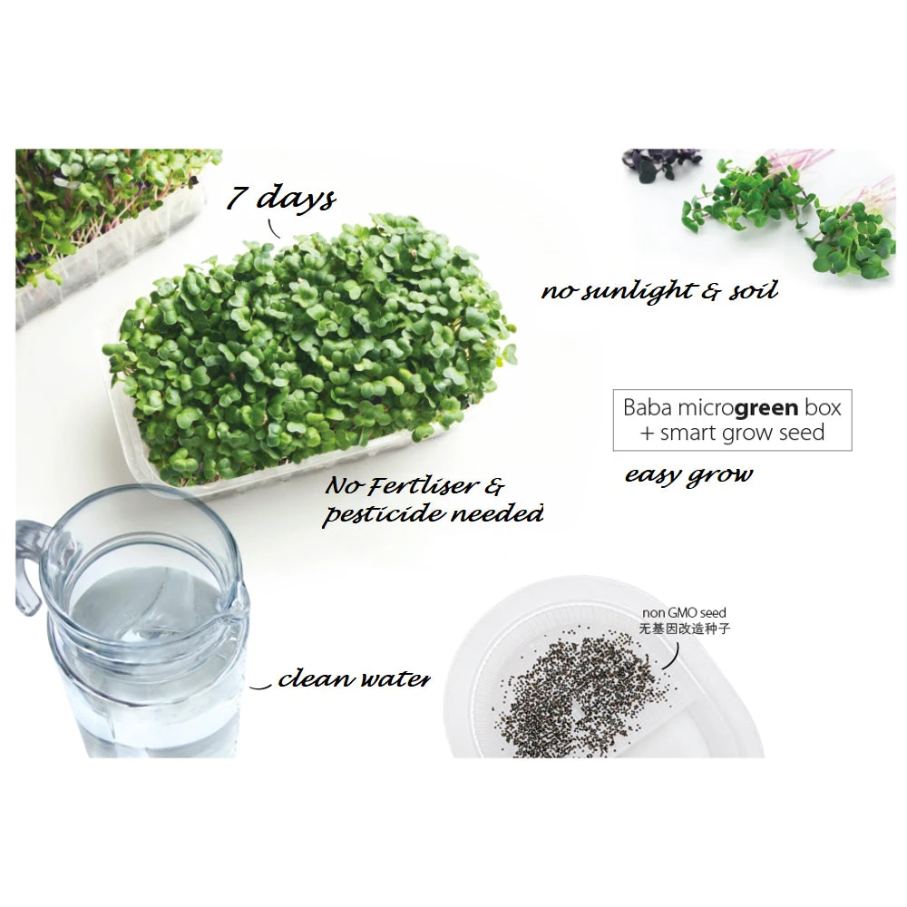 Recommended seeds to plant: White Radish, Japanese Kale, Choy Sum, Pak Choy, WheatgrassÂ