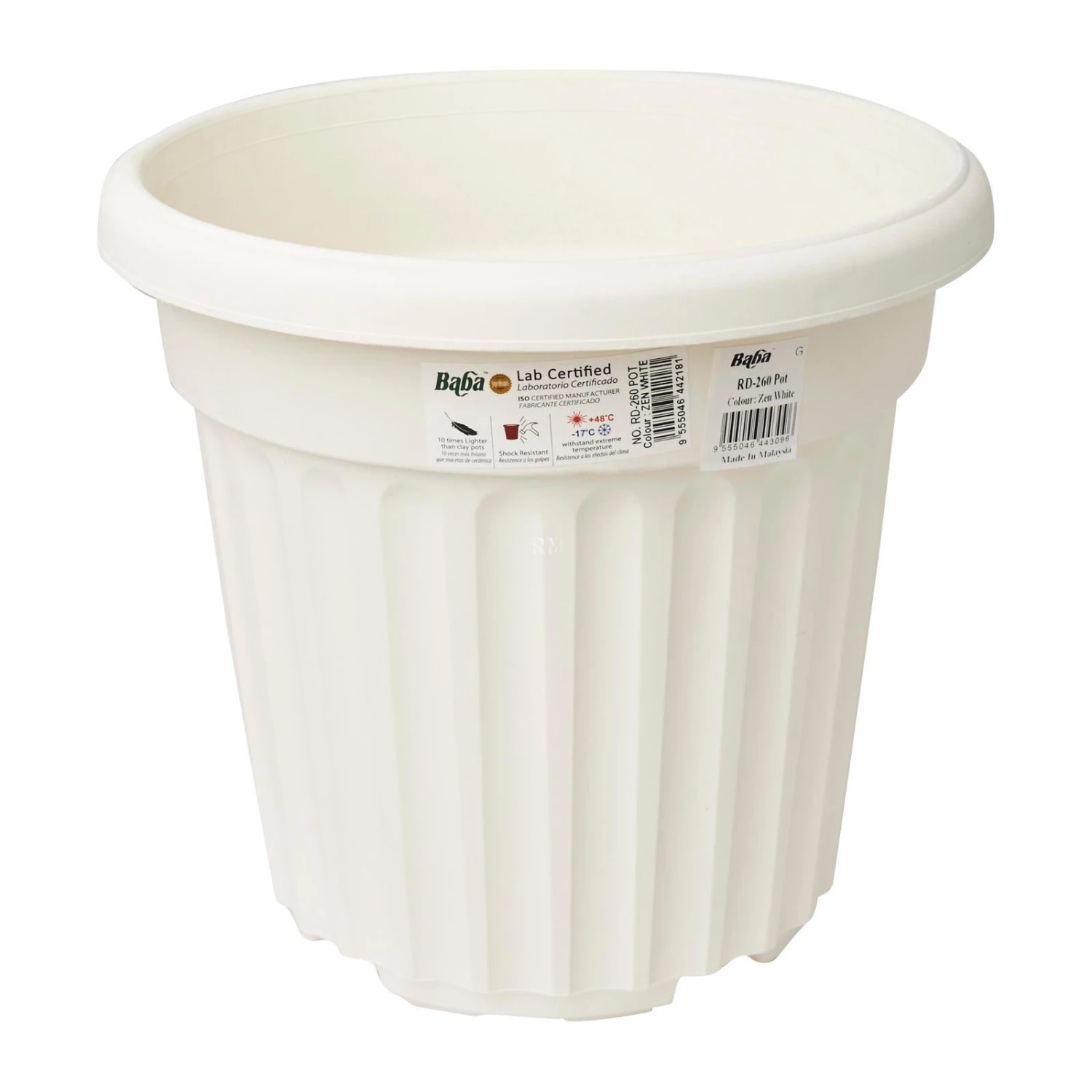 Medium size 260mm round planting pot, made of PP virgin material and food grade coloring. Product can withstand temperature range from +48 degree to -17 degree, and with UV protection. Good water ventilation to protect your plant from over-watering. Recommend to pair with a brown plant saucer. Suitable for outdoor gardening.