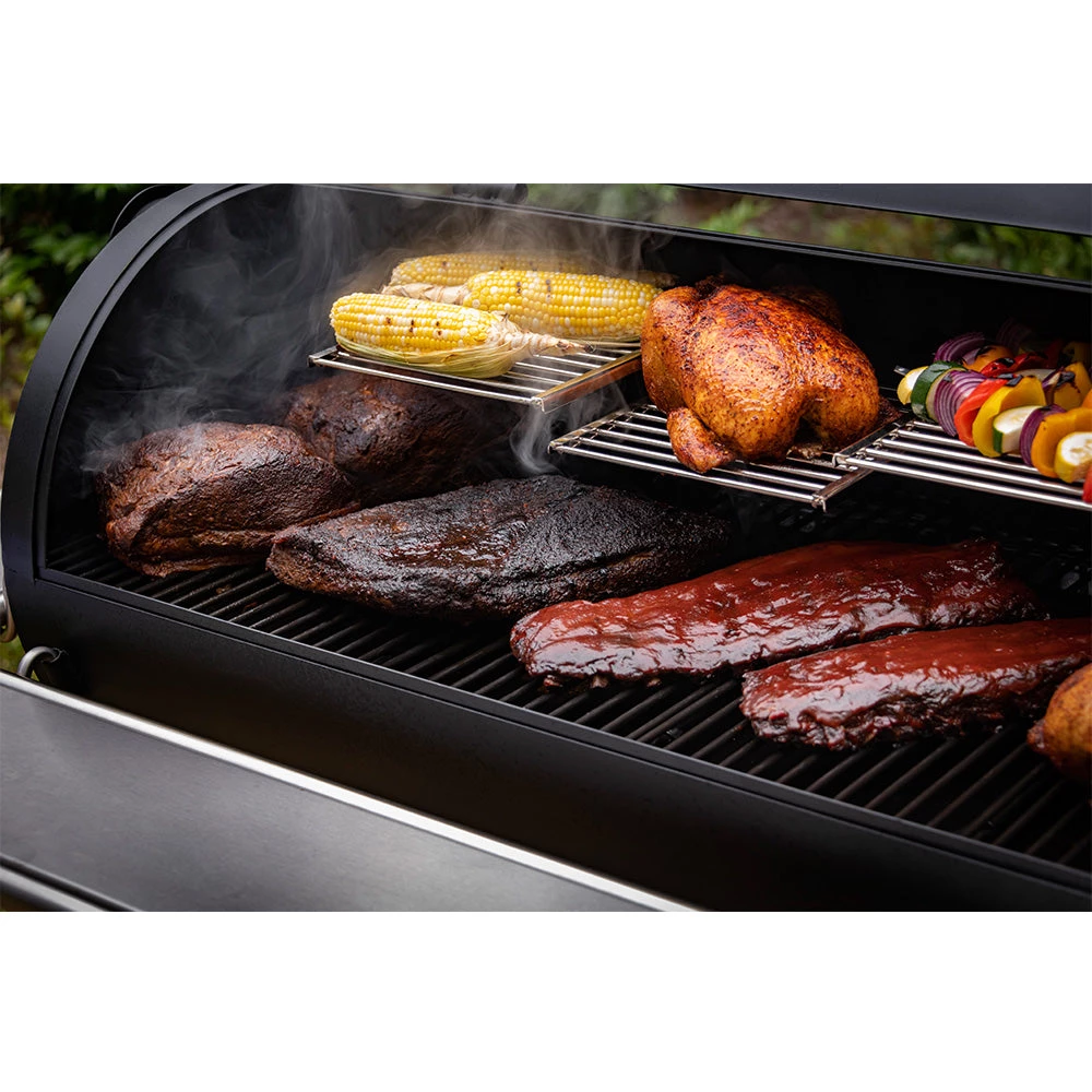 - Dual temperature gauges to easily monitor cooking temperatures