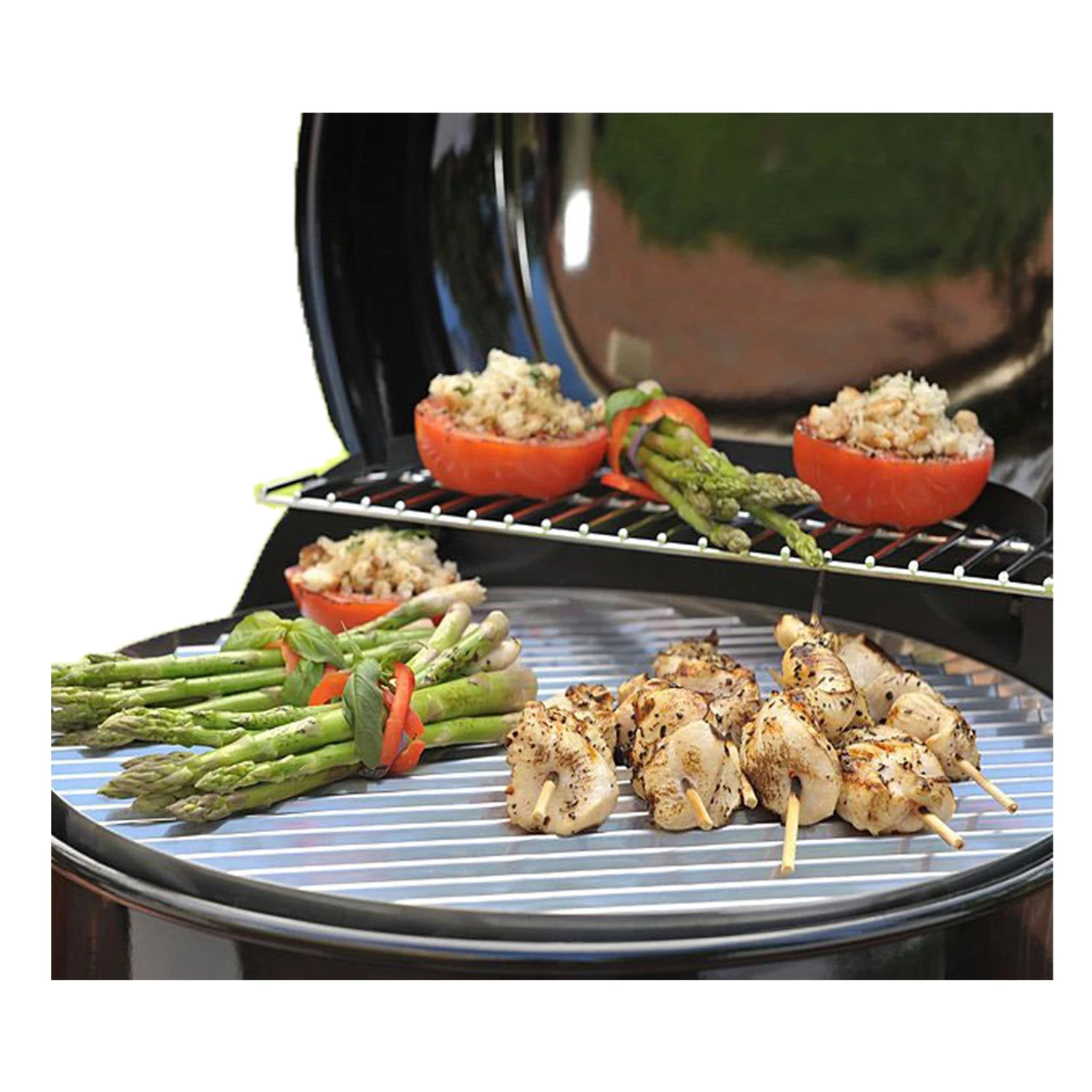 Stainless Steel Cooking Grate Stainless steel cooking grate is large enough to fit up to 12 hamburgers.