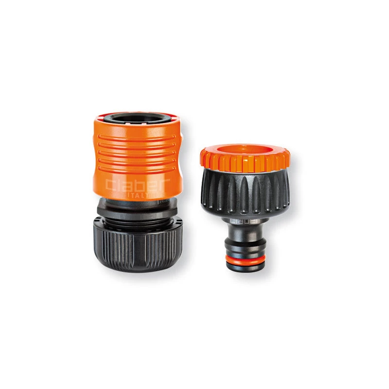 Everything you need to connect the hose to the tap and other accessories. The tap connector is installed tool-free and guarantees a perfect connection. The Quick-Click coupling, completely rust-proof (as it has no metal parts), is shock-proof, resistant to the elements, UV rays and very high water pressure: up to 40 BAR, well over the usual level in home gardening applications. The internal Claber-patented spring is extremely resistant and durable. Set with tap connector 3/4 inch and reducer 3/4 inch – 1/2 inch – automatic coupling (1/2 inch ). Made in Italy.