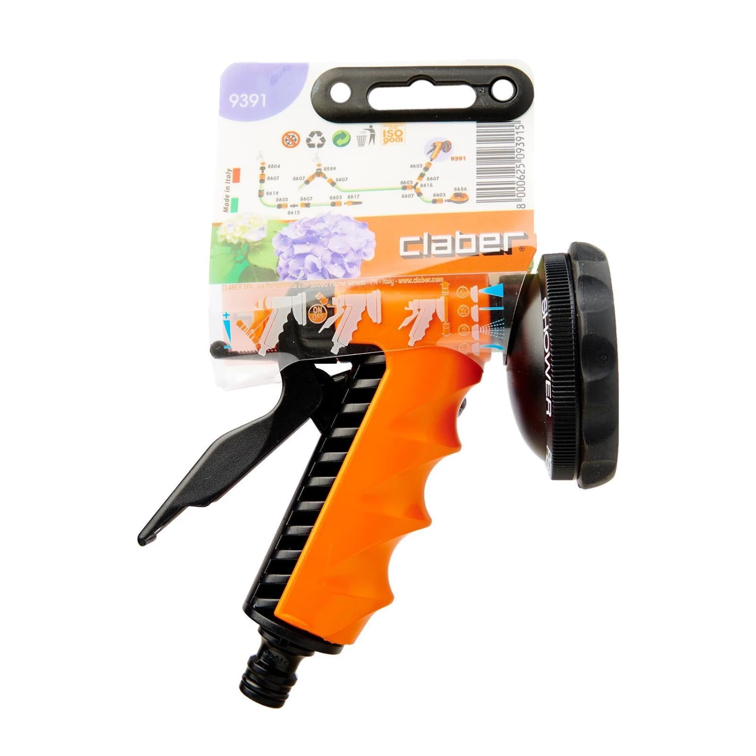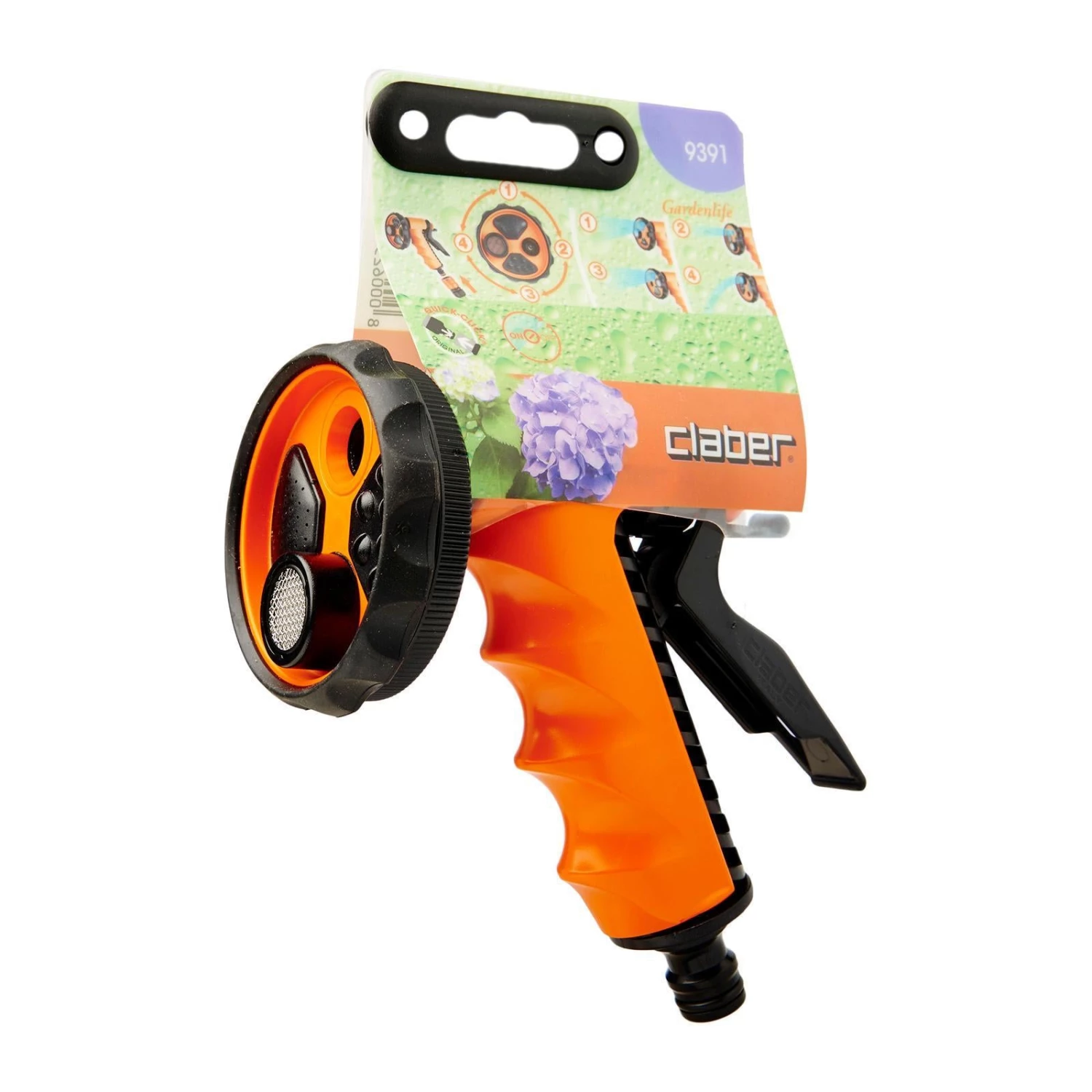 Multi-Jet spray pistol with practical ergonomic grip. Rotate the pistol head for different jets: from jet to soft fan wise – gentle soaker – shower and aerator spray (jet mixed with air bubbles). Very useful for watering potted plants. Selector device and lock for required jet. Made in Italy.