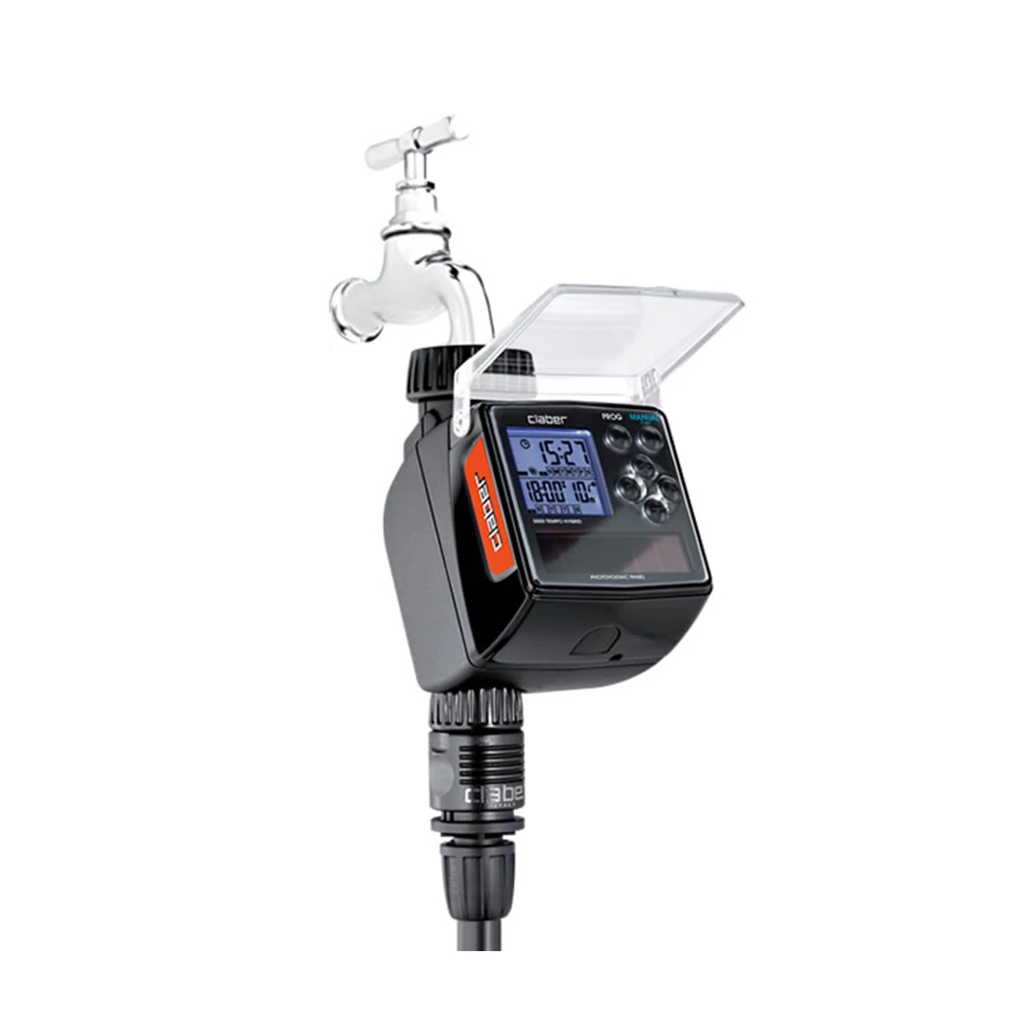 Claber research presents a water timer that is next generation in ecology, versatility and reliability. The integrated photovoltaic panel uses the clean, unlimited energy from the sun, while the 1.5 volt battery inside guarantees sure operation in all weather conditions. Tempo Hybrid is ready for immediate use and allows you to manage irrigation with the utmost versatility and ease. The backlit displays offers optimal legibility and gives you complete control over water timer operation. Tried and tested for reliable, hassle-free operation, it is fitted to connect with the Rain Sensor device, which interrupts the selected program in the event of rain and starts it again automatically when the rain has stopped: also in wireless radio frequency version. Made in Italy.