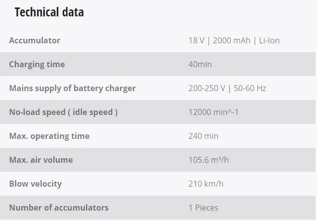- Strong blow-air velocity with 210km/h