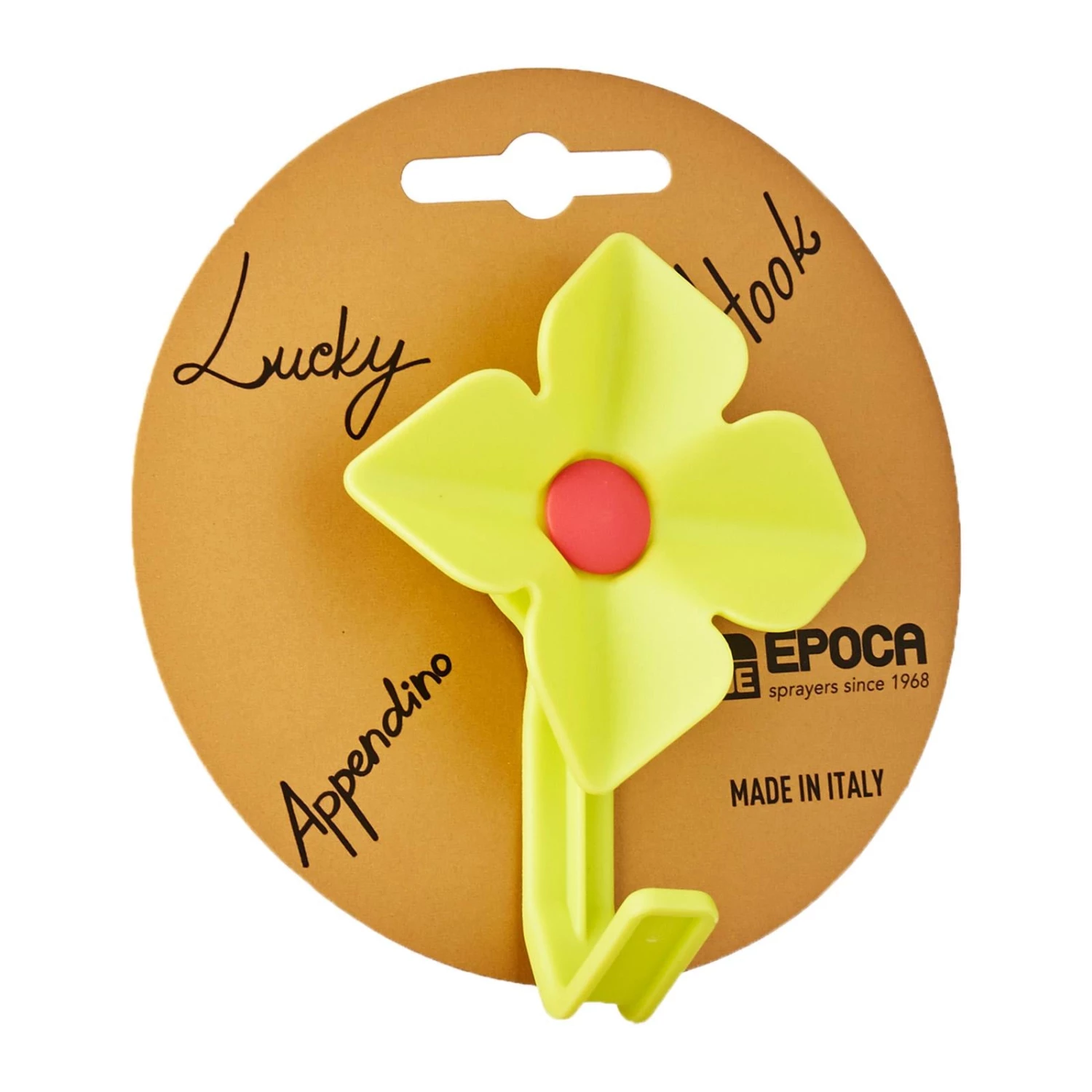 Epoca Lucky Hook (Green/Red) is a plastic flower hook with silicone suction cup. This simple yet adorable hook can be used on glass or glossy surfaces. While using it as a decoration, the hook can be utilised as storage solution at the same time. It is waterproof, removable, and reusable.
