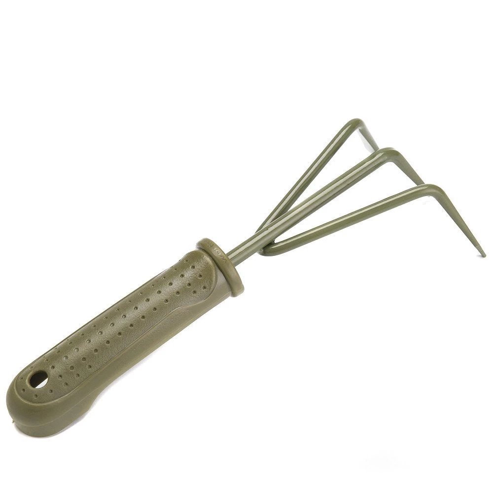 Greensword Carbon Steel Cultivator – Powder coated carbon steel cultivator is light and durable. Compact and easy to use, the cultivator is great for lossening soil around weeds and cultivatong soil. The ergonomic soft PVC handle is comfortable for holding and pleasant handling. Curve deign handle fits well with your fingers. Olive green and a white ring color mixed blends in well with garden scenery.