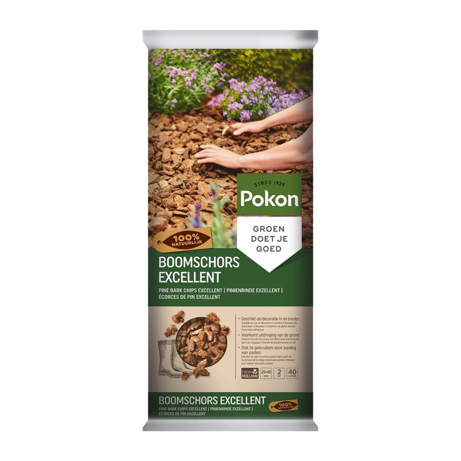 Pokon Pine Bark Chips Excellent is a decorative product that is very suitable as a mulching layer in flower pots and troughs, and that can be used indoors or out. It is made from the bark of maritime pine. These trees grow on the shores of the Mediterranean Sea. Their bark has a robust structure, so it is very long-lasting. The individual chips are approx. 25-45 mm in size. One advantage of using bark chips as mulch is that they prevent the soil from drying out too quickly. Not only is Pokon Pine Bark Chips Excellent a 100% natural, highly sustainable product, it is also FSC certÂified.