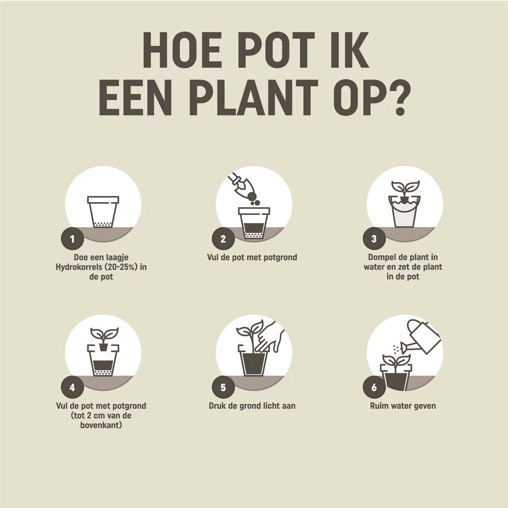 - Sprinkle a layer (20-25%) of hydro granules into the pot