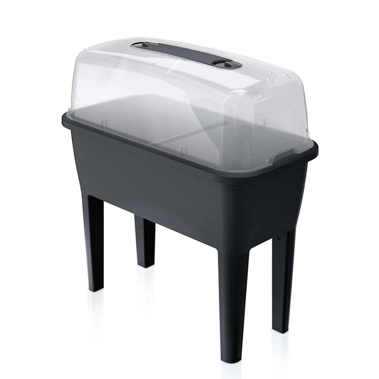 The portable seedbed collection from Respana collection is an important part of the gardening backyard and a perfect solution for growers who face difficult climatic conditions. This miniature greenhouse which, does not take up much space at home, creates the perfect conditions for the growth of the seedlings through good ventilation and humidity control. Cultivation of early vegetables, herbs or warm weather-loving plants sensitive to weather conditions – can be continued regardless of weather conditions outside and bringing a great joy of early harvest. The large bowl of the seedbed is equipped with stabilizing walls to strut. The light transparent lid provides adjustable ventilation holes in order to create an ideal micro-climate and prevent overheating plants. What is more, it protects the seedlings from annoying insects. Complete comfort in usage provides a quick change of legs from short to long, included as an option.