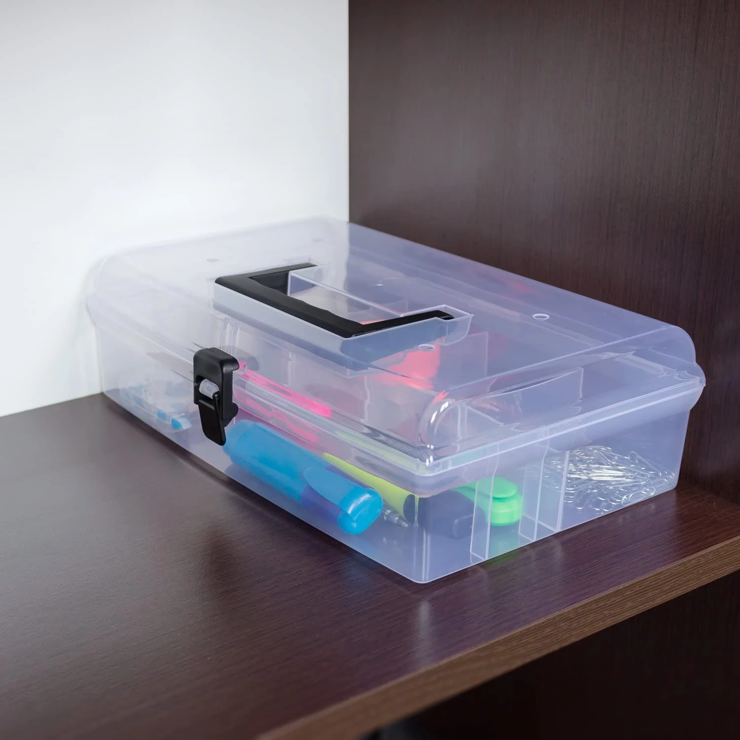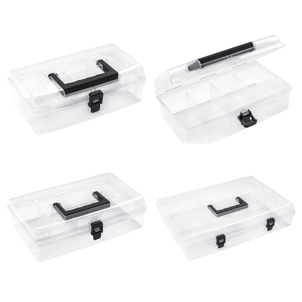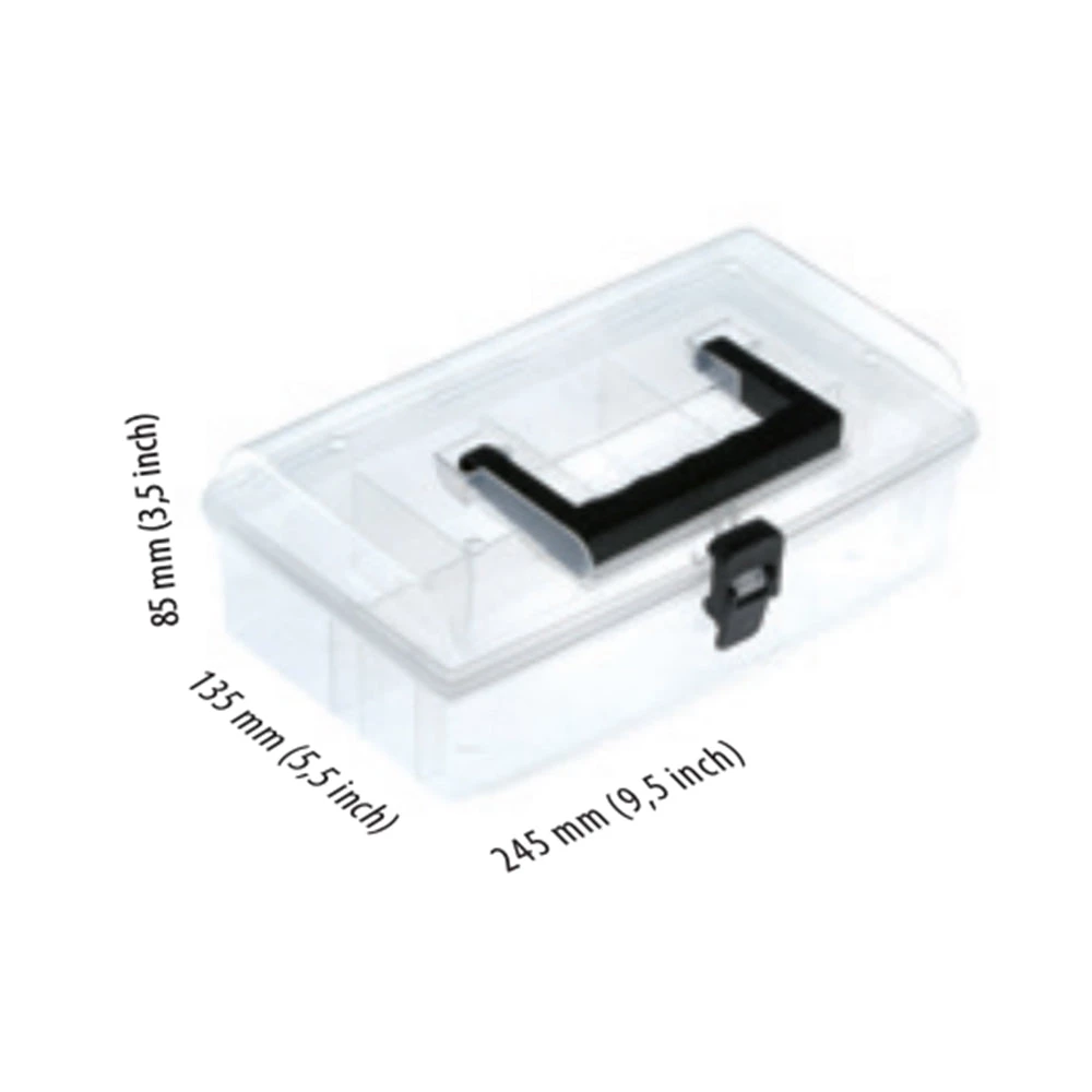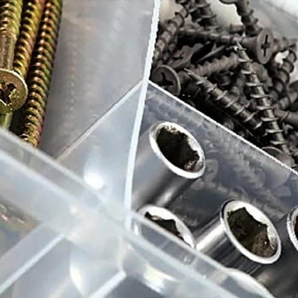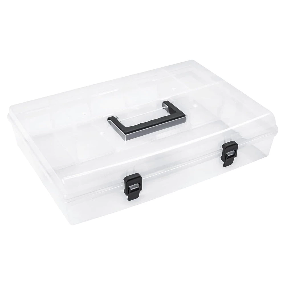 Prosperplast NUN series organiser box, simple and universal. The containers comes with separators allow it to fit various small objects. The organiser box is transparent, perfect visibility for easy accessibility. The foldable handle makes it easy to carry around. The organiser box is ideal for storing buttons, threads as well as small fishing tools and accessories. It is perfect to use as a container for storing DIY tools such as screws and nuts.