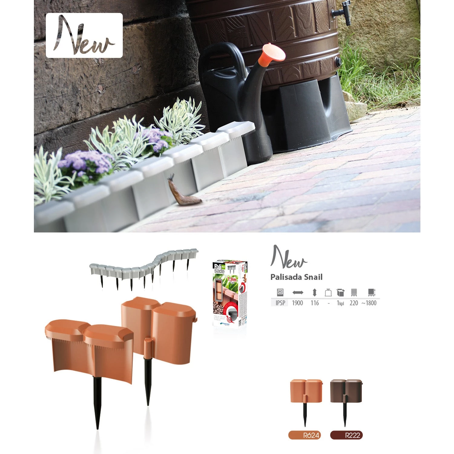 Garden anti snail palisade IPSP. An innovative product designed to protect the crops, herbs or vegetable patches from slugs and snails. It will also keep out those insistent pests from flower beds. A number of sharp spikes placed underneath palisade edges will not allow snails to get into our plants. Palisade is made of high quality material which make it resistant to weather conditions. Palisade is designed on the basis of flexible modules which allow to create various shapes.