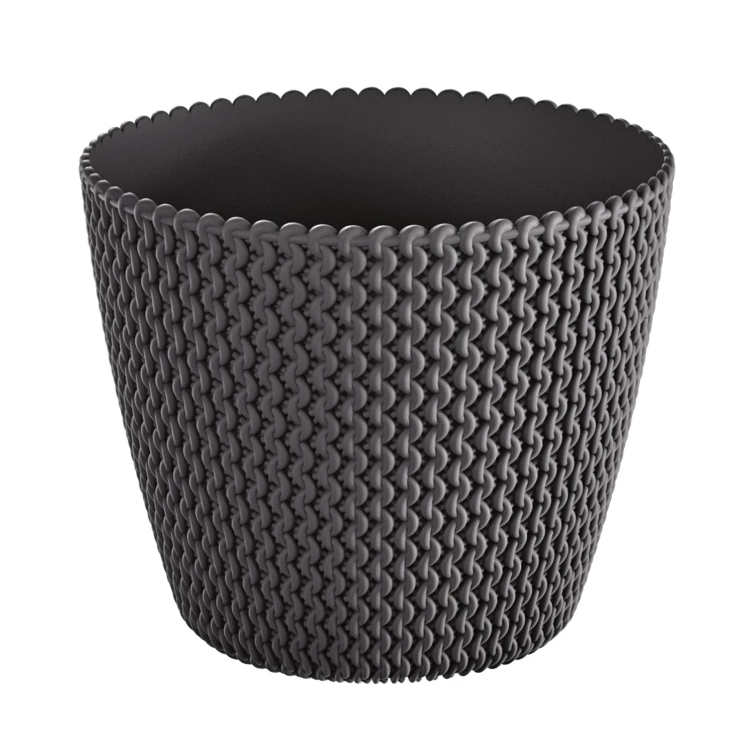 Prosperplast Splofy Round Basket Wave Pot (187x158mm) – Charcoal Gardening Supplies