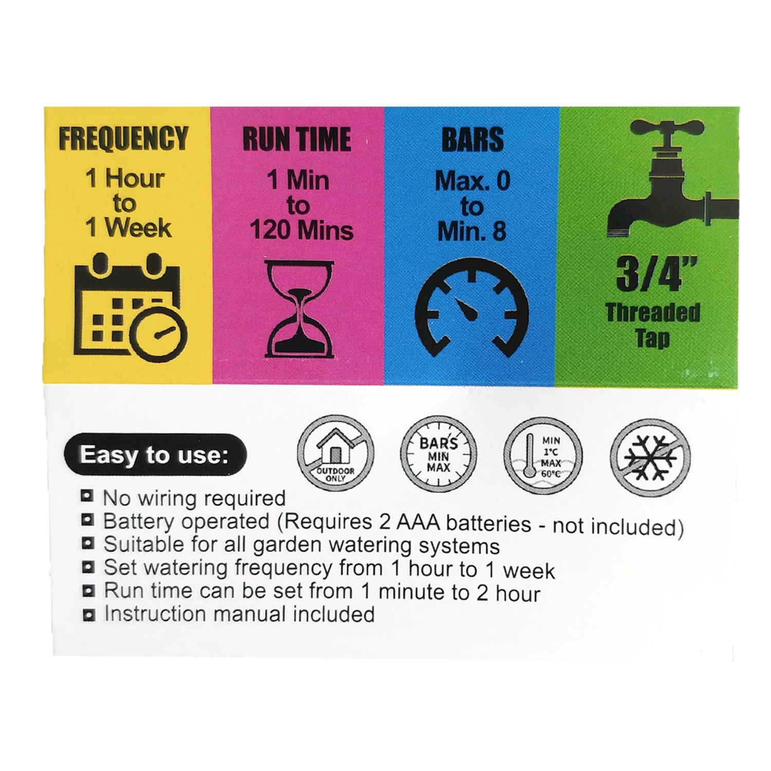 Steve & Leif automatic gardening water timer is the essential accessories for everyone’s garden irrigation system. The flexibility of watering frequency and runtime provides peace of mind for every garden enthusiasts with busy schedule.