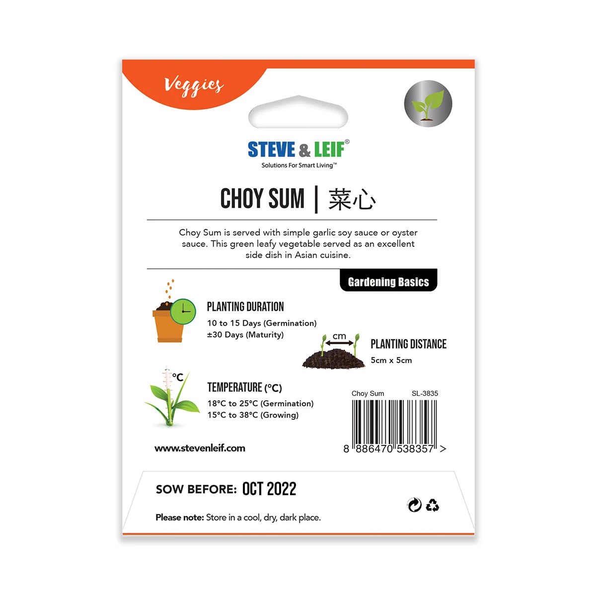 Sow Before: Date stated at the back of packaging
