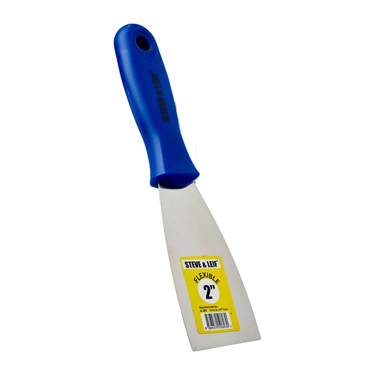 Steve & Leif’s Blue Handle Flexible Hand Scrapers come in 10 different sizes for you to choose from. Flexible flat stainless steel blade, attached ergonomic handle with an eyelet hole for hanging. These scrapers are excellent for putty application, scrapes away paint and other general purposes.