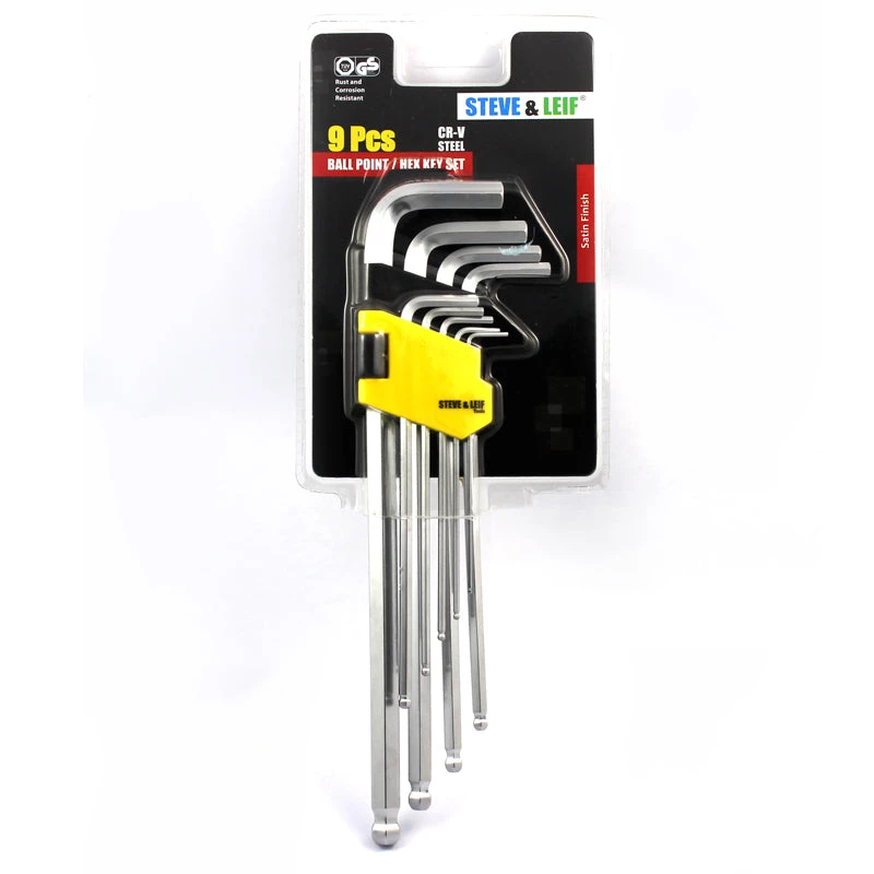 Steve & Leif’s 9-piece Ball Point/ Hex Key Long Handle come with storage case marked for easy identification and to organize the keys neatly. Use to remove and fix most socket head screws found in vehicles, electronics, furniture, equipment, and more. Sizes include – 1.5mm, 2mm, 2.5mm, 3mm, 4mm, 5mm, 6mm, 8mm, 10mm