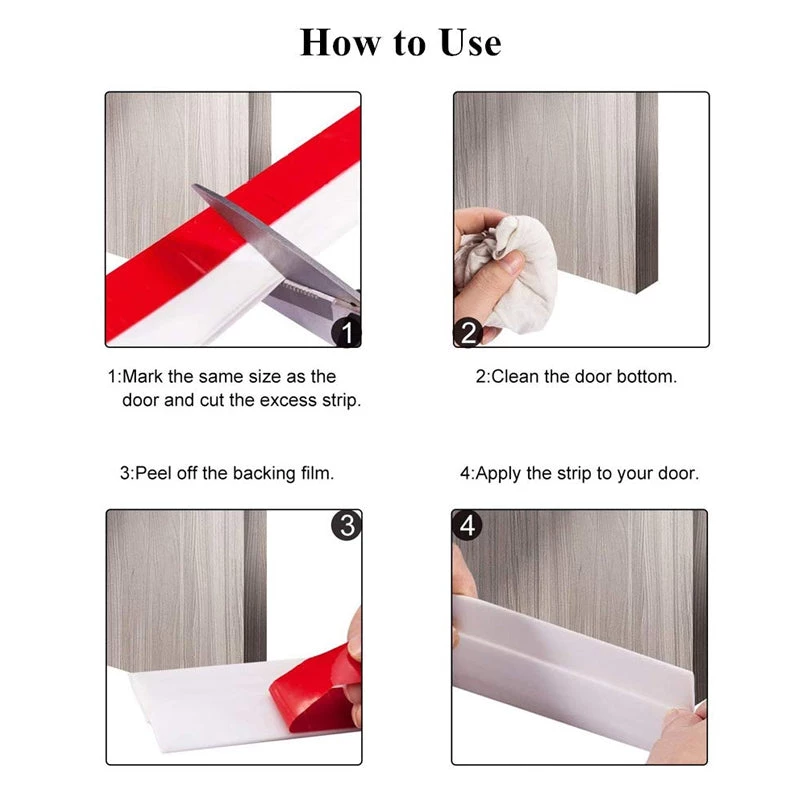 Steve & Leif’s Door Bottom Seal is simple and cost effective solution to cover the door bottom gap, keeping the cold air in and the hot air out. Keep air conditioned rooms cooler thus saving energy cost. It has major cost and environmental benefits. Suitable for shower door bottom, bathroom door bottom and other doors and windows.