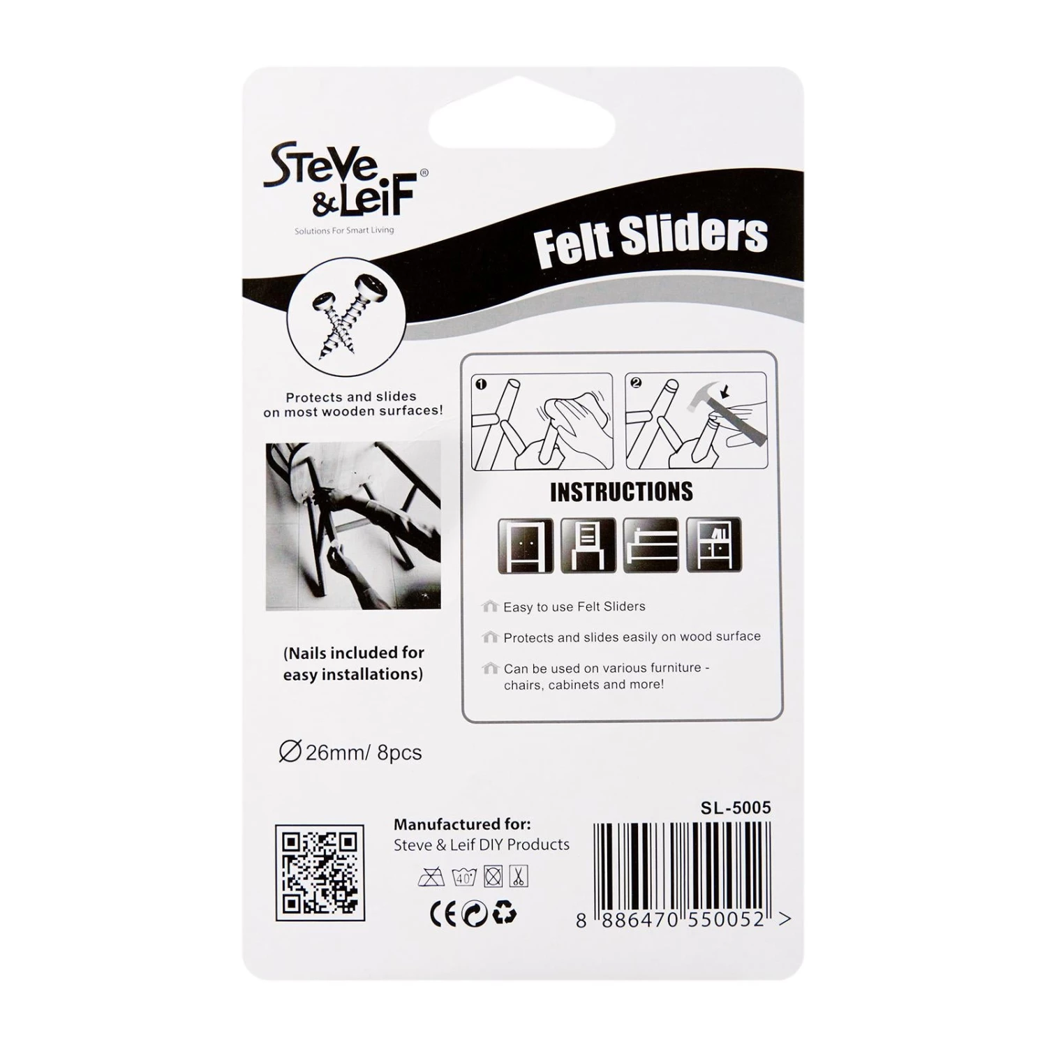 Steve & Leif’s Round Nail Felt Protector is best used for protecting the hard surfaces from potential scratches on your floor. Reduce noise and friction when dragged across floors. Nail the felt protectors to the bottoms of the furniture legs for quick and easy installation.
