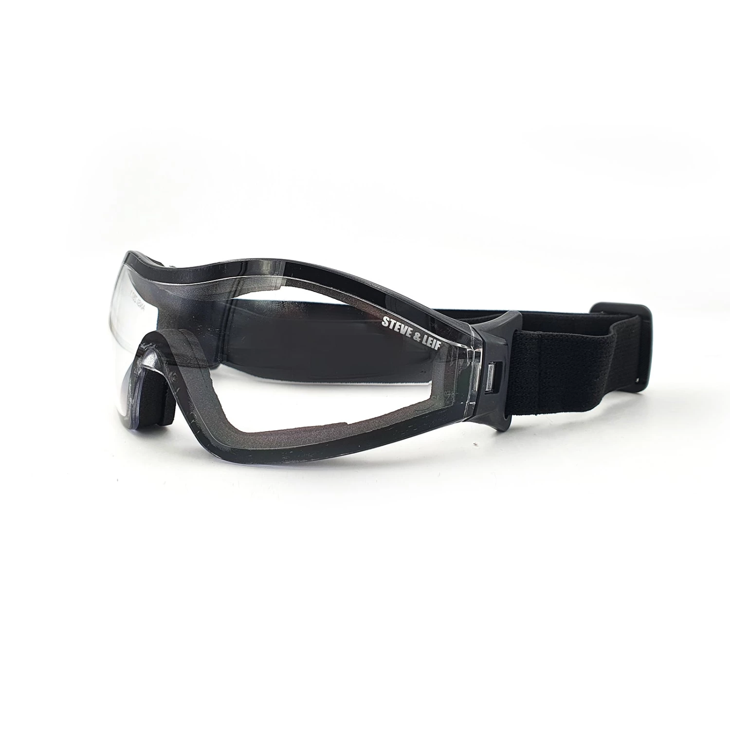 Steve & Leif Wide Lens Full Cover Encapsulated Foam Seal Black Safety Glasses With Adjustable Strap is made of Polycarbonate lenses. It is highly resistant to impact and anti scratch. The glasses meant to fit over spectacles, provide secure fit and all-day comfort. Your excellent choice for a pair of safety glasses to protect your eyes from exposure to hazardous working environment.