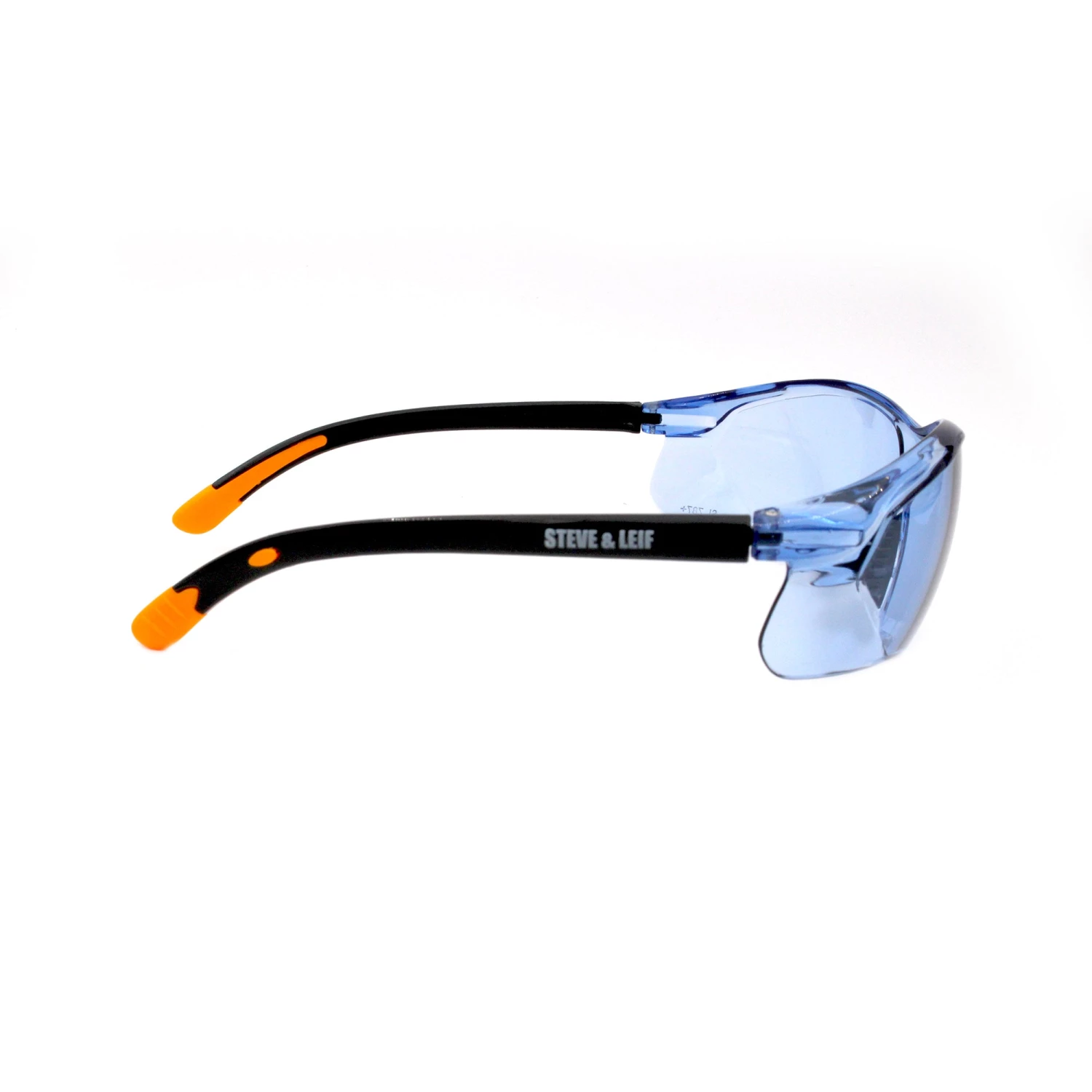 Steve & Leif Modern Design Safety Glasses made of Polycarbonate lenses are highly resistant to impact and anti-scratch. Frameless design provides a wider field of vision, anti-slip nose pads, side temple pads for a secure fit and all-day comfort. Your excellent choice for a pair of safety glasses to protect your eyes from exposure to the hazardous working environment. Available in Blue, Black, Brown, and Clear.
