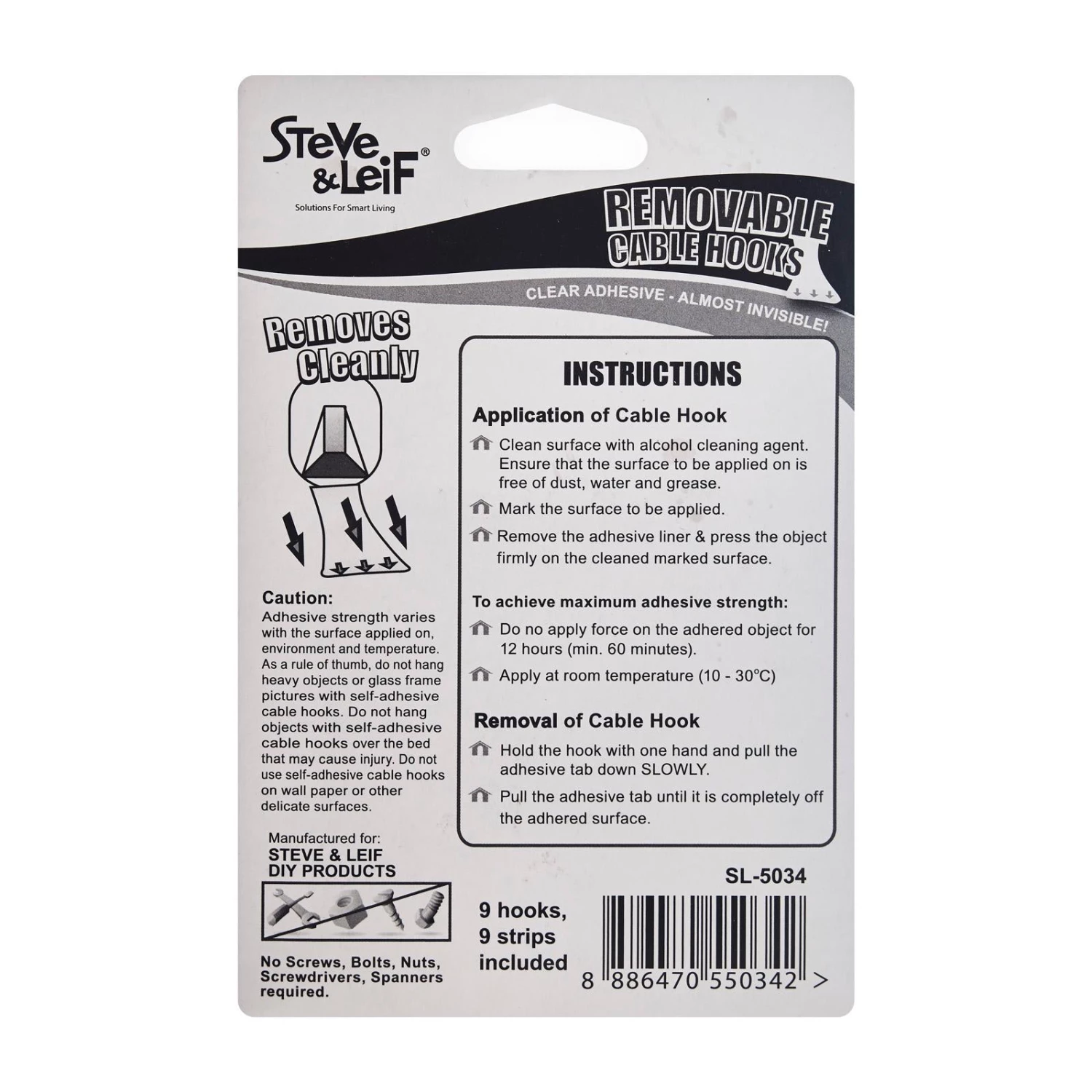 Steve & Leif’s Removable Cable Hooks to help you keep all your cable wires in place. No more messy cable wires behind table, desk and television as cable clips help to make your place looks clean and organized effortlessly. No damage on mounting surface or leave any residue as it removes cleanly.