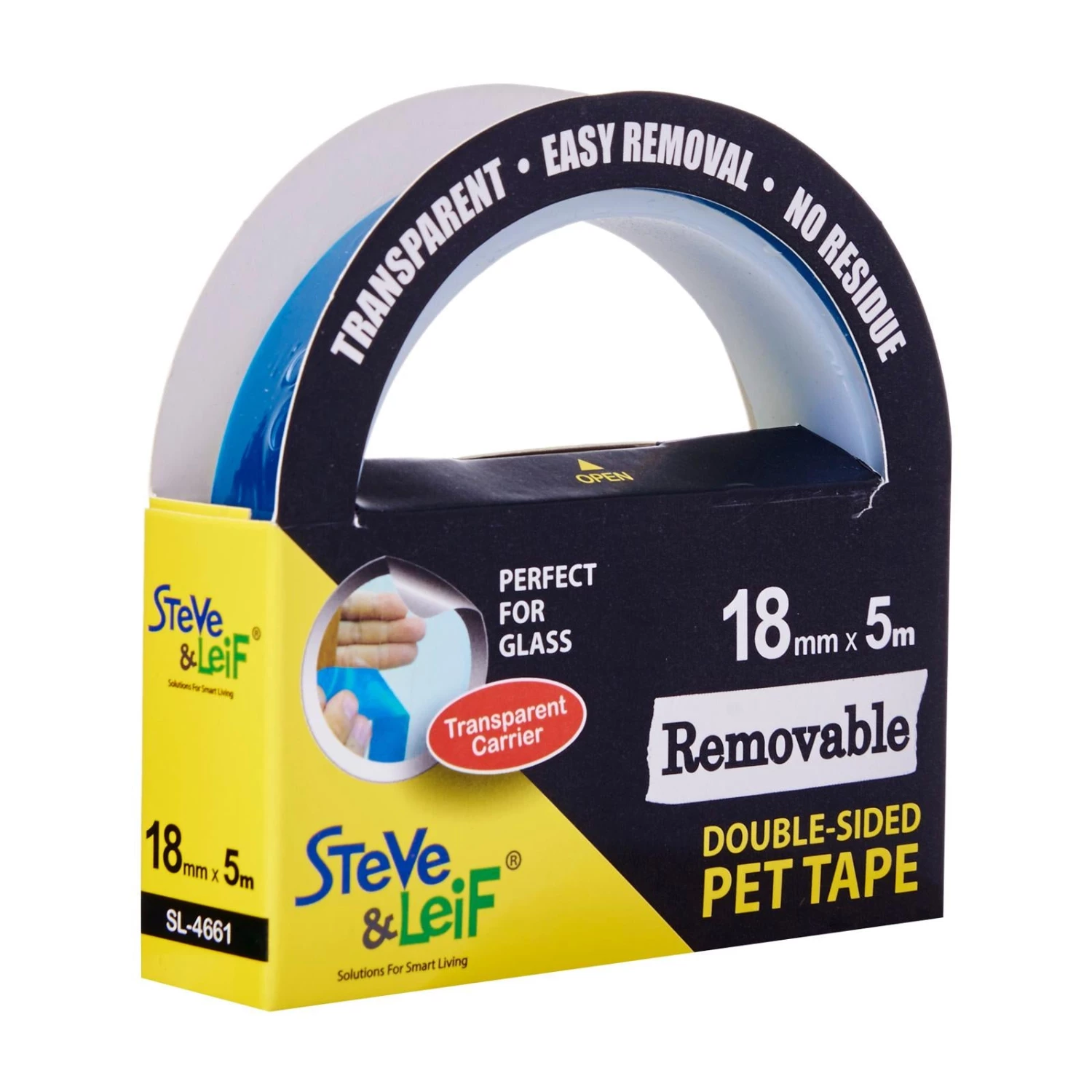 Steve And Leif 5m Removable Double-Sided PET Tape is perfect application for glass as it is transparent and residue-free removal. Flexible and dimensional stable PET carrier provide good performance in die-cutting and laminating. Available in 3 sizes: 12mm, 18mm, 24mm.