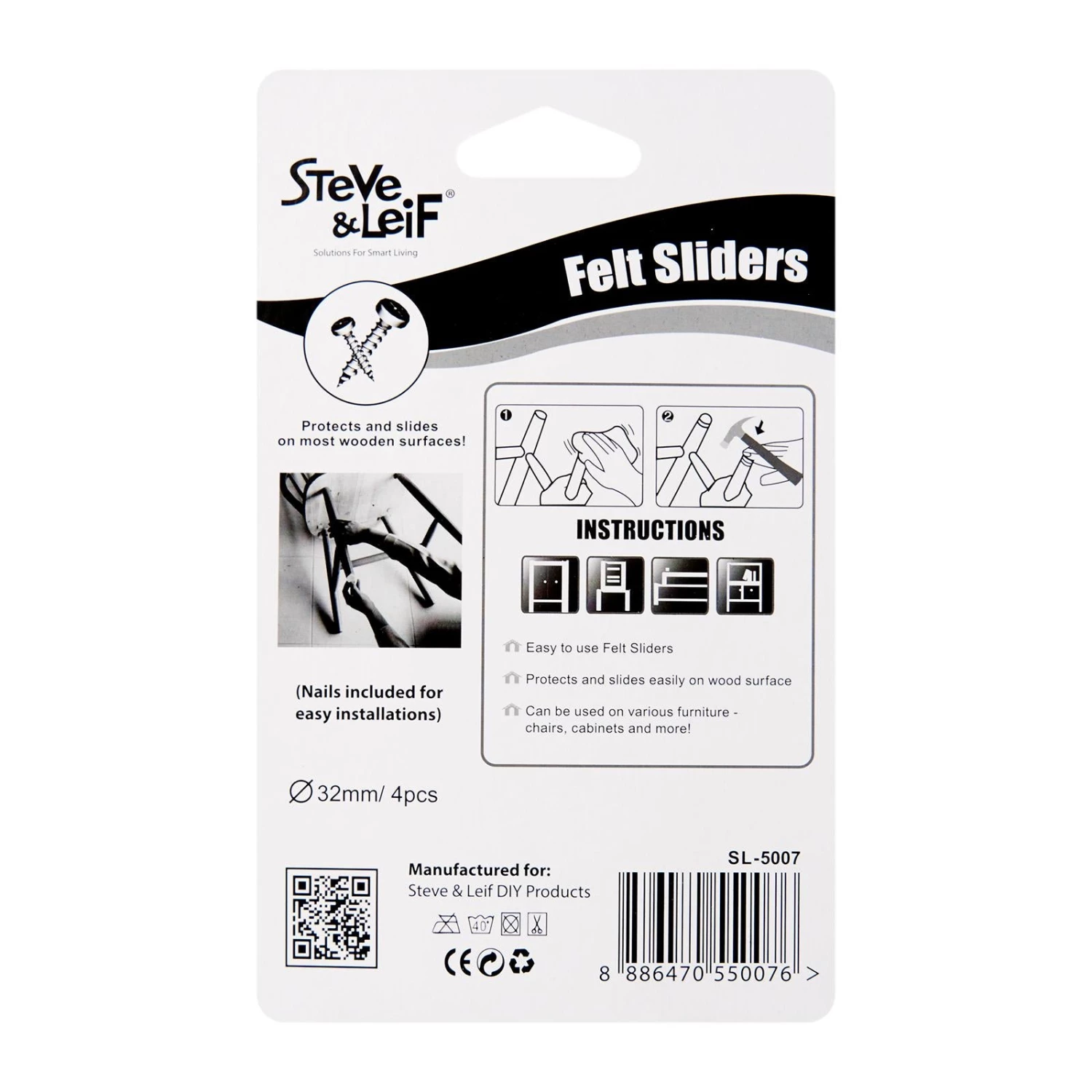 Steve & Leif’s Round Nail Felt Protector is best used for protecting the hard surfaces from potential scratches on your floor. Reduce noise and friction when dragged across floors. Nail the felt protectors to the bottoms of the furniture legs for quick and easy installation.