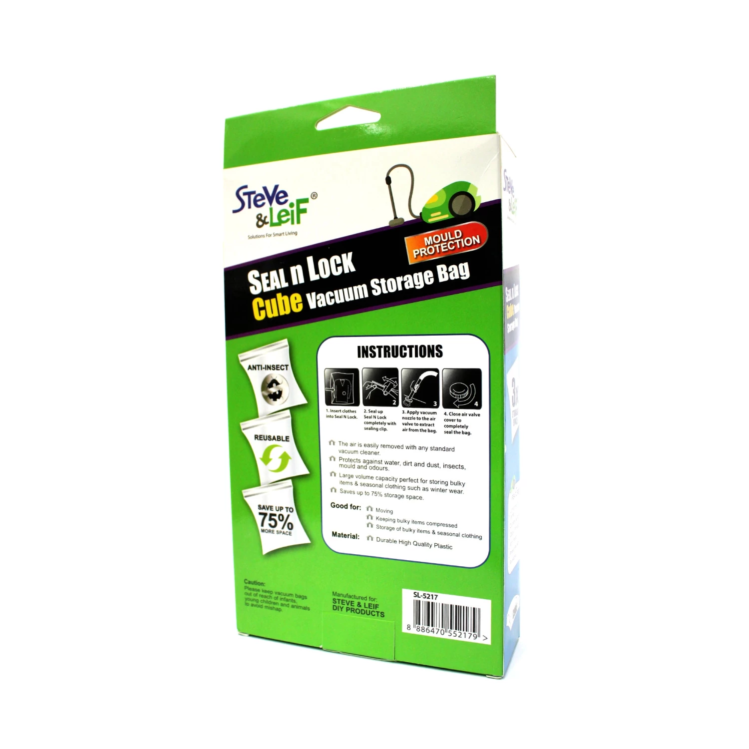Steve & Leif’s Seal & Lock Cube Vacuum Storage Bag is durable and perfect for your storage needs which offer 3x more space! Simply lay flat and vacuum the excess air from the bag and you are ready to go. Keep all your bulky items compressed to make more room for more items to bring along while travelling or save storage space in your cabinet!