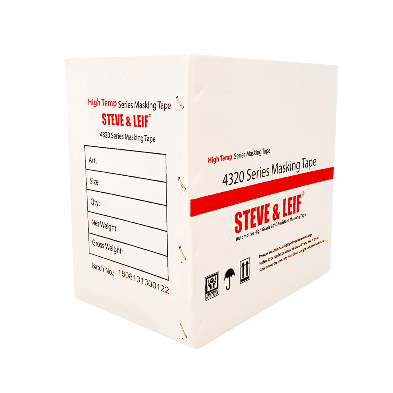 Steve & Leif High-Temp Masking Tape is an indoor medium-high temperature (80 °C < 60mins) pressure sensitive masking tape suitable for most general contracting automotive painting and general painting purposes. The rubber based adhesive ensures instant adhesion to the surface applied on and removes cleanly from the surface when the work is done in normal indoor conditions (up to 24hours UV exposure). The 145 microns thickness crepe paper is easy to tear yet strong enough to prevent bleed-through. Steve & Leif ® offers a wide variety of Masking Tape for normal to your most demanding needs.