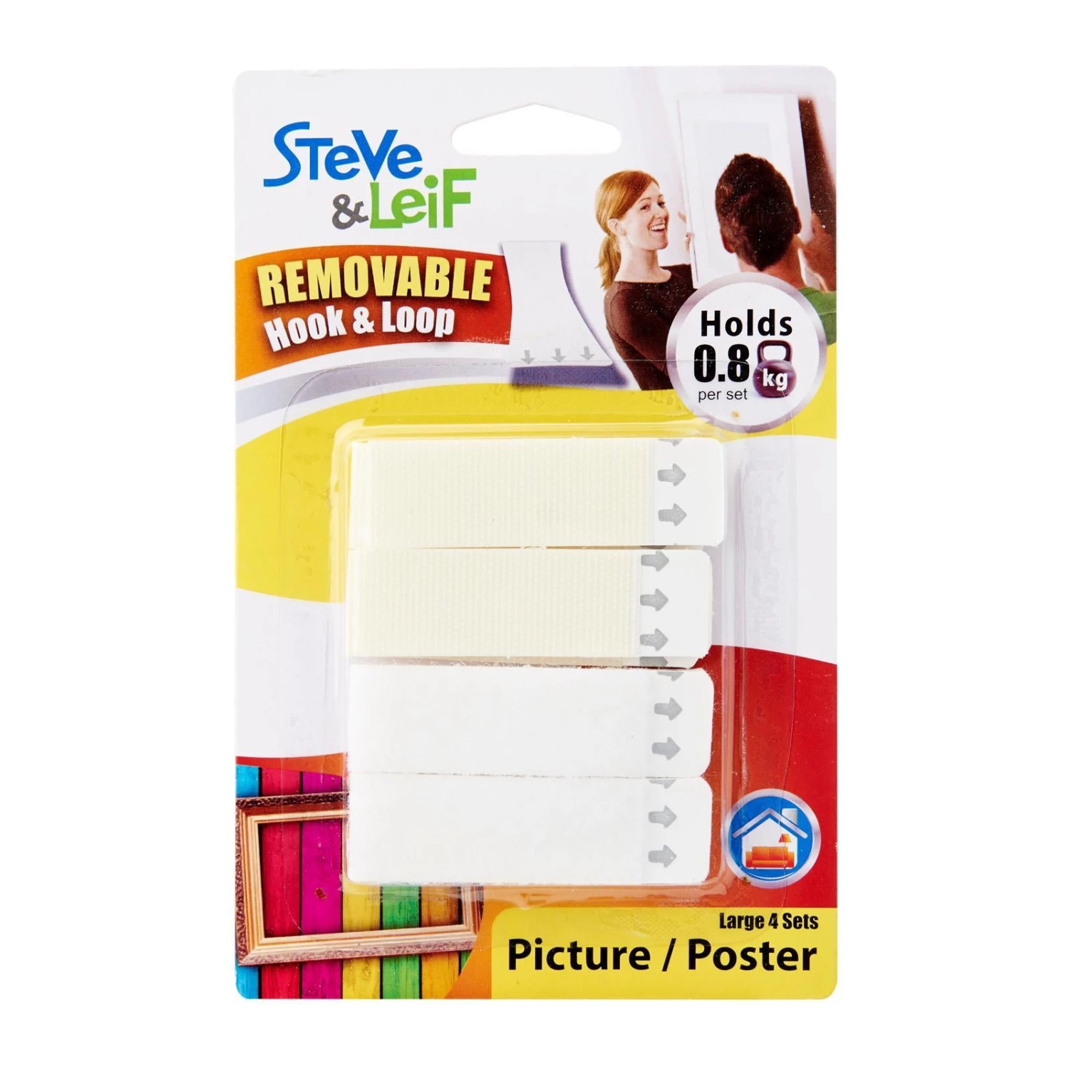 Steve & Leif Removable Hook & Loop Strips are super grip, easily removable and able to hold up to 0.5kg (Medium) / 0.8kg (Large) per set. Ideal for hanging interior decorations such as picture frames, clock, mirror, and more! No damage on mounting surface or leave any residue as it removes cleanly.