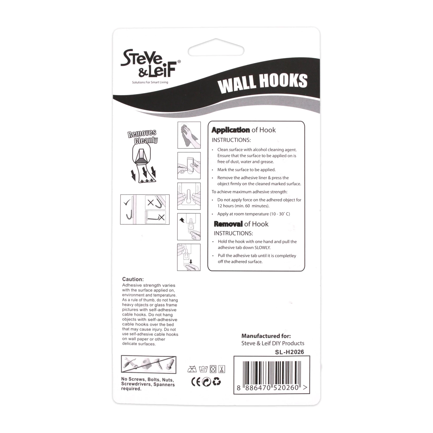 Steve & Leif Removable Wall Hooks are self-adhesive and easily removable. Forget about screwing or nailing as removable hooks are fast and easy to hang your favorite item up on the wall! No damage on mounting surface or leave any residue as it removes cleanly.